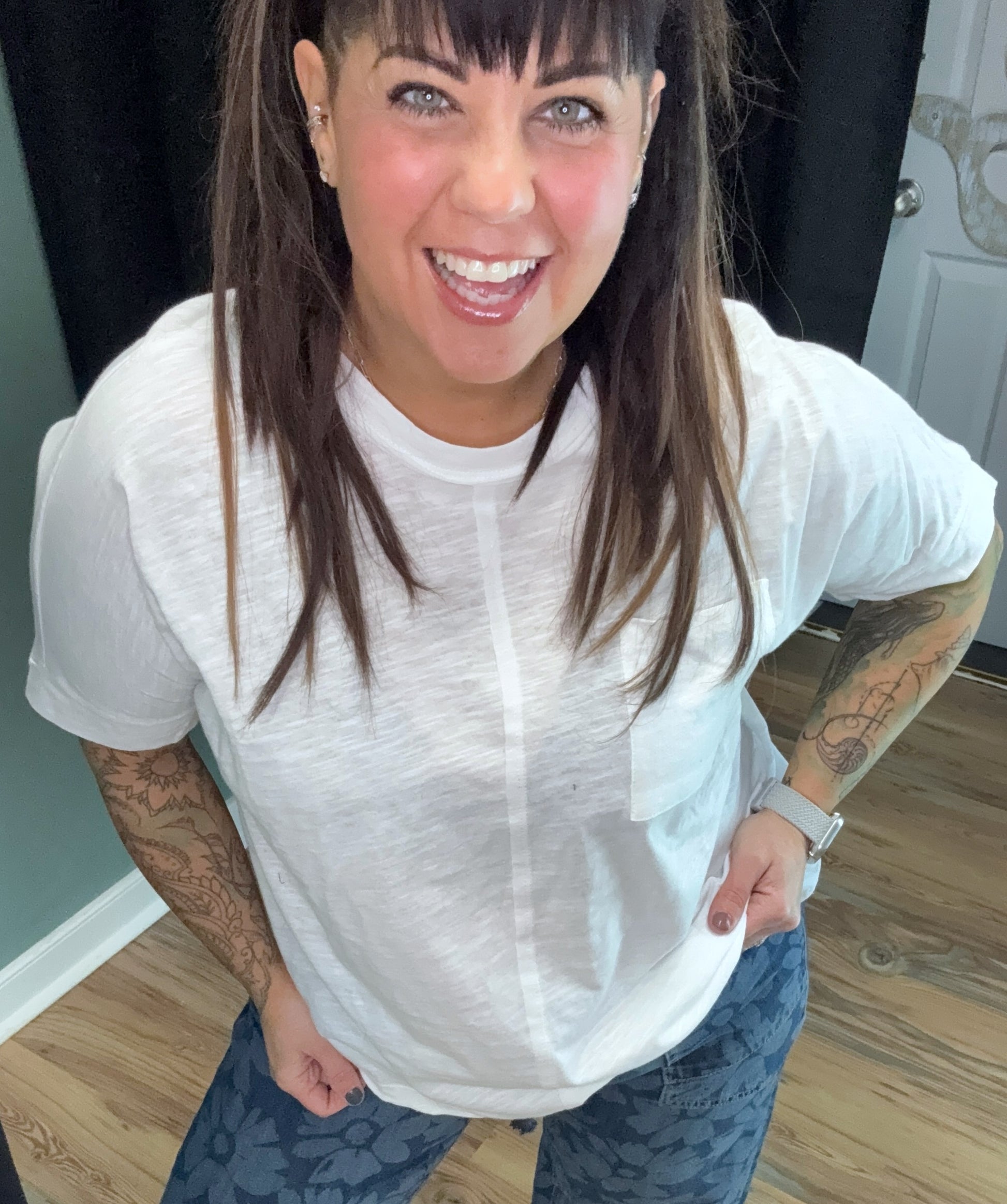 Elevate Your Wardrobe With The Ivory Cotton Slub Short Sleeve, Featuring A Convenient Chest Pocket And A Unique Exposed Hem Design. Ideal For Casual Outings, This Soft And Stylish Top Combines Comfort With Practicality, Making It A Versatile Addition To Your Everyday Attire.