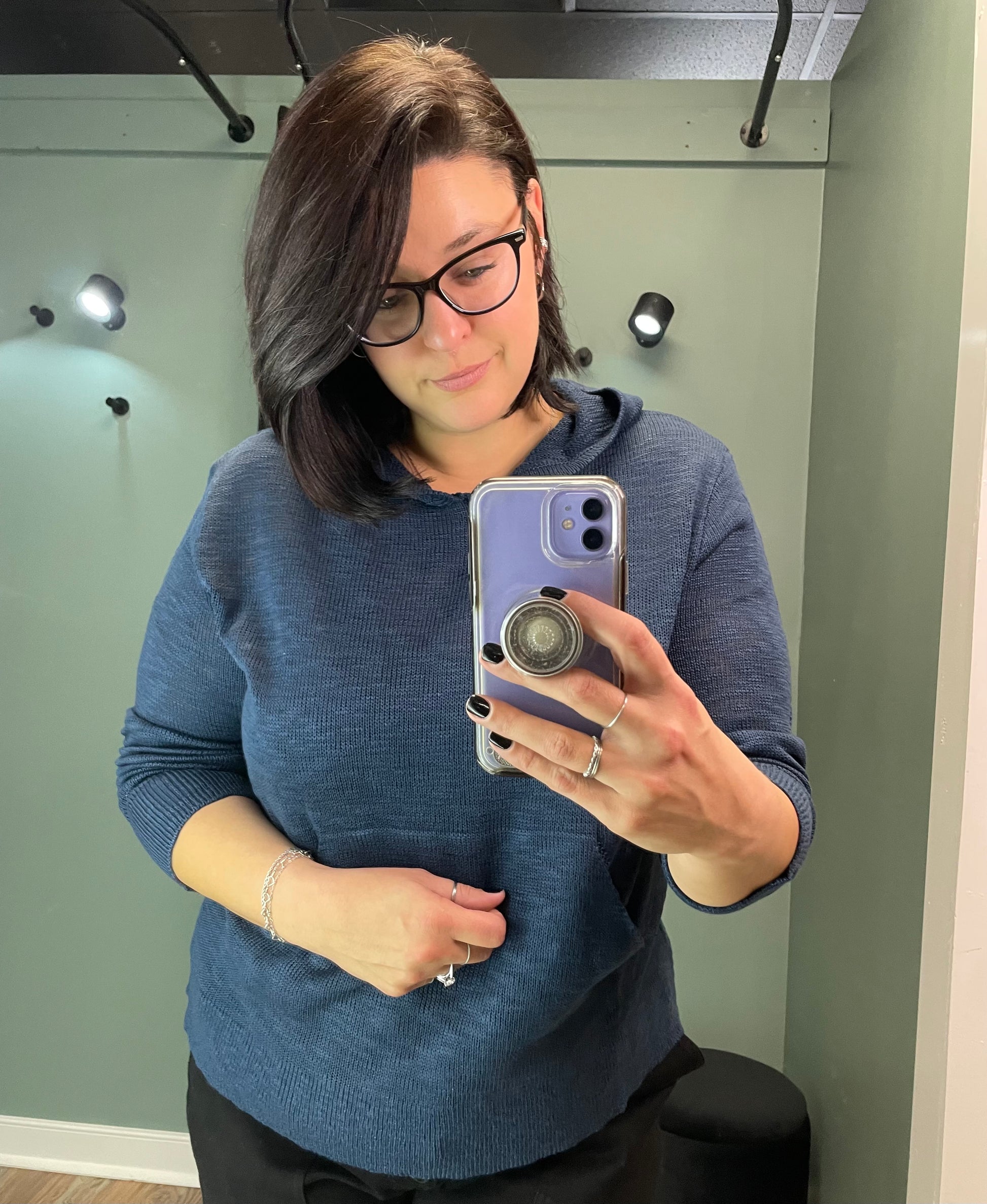 Effortlessly Laid-Back With A Modern Touch, This Lightweight Navy Hooded Top Is The Perfect Blend Of Comfort And Style. Designed With A Relaxed Silhouette, It Features A Soft, Breathable Knit That Drapes Beautifully For An Easy, Everyday Fit. The Subtle Heathered Texture Adds Visual Interest, While The Cozy Hood Brings A Casual, Sporty Vibe. Finished With Long Sleeves And A Slightly Cropped Length, This Versatile Piece Pairs Perfectly With Your Favorite Denim, Leggings, Or Lounge Sets. Whether You’re Running Errands Or Relaxing At Home, It’s An Easy Go-To For Elevated Comfort.
